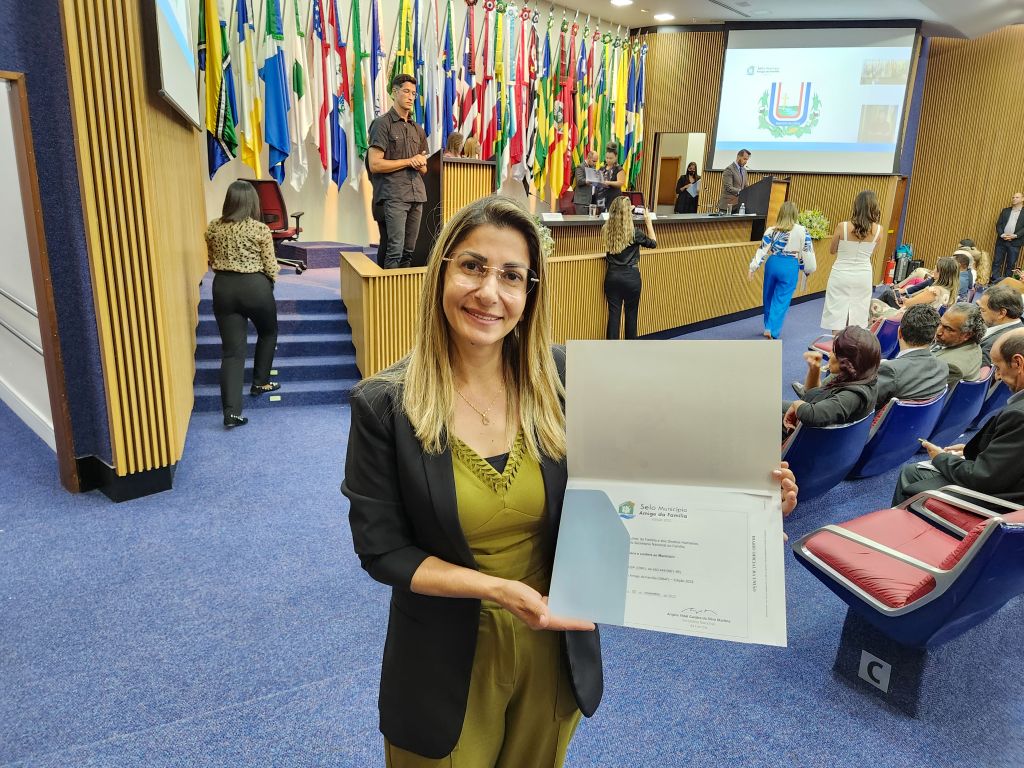 A secretária municipal da Família, Eliana Marques, o presidente do Conselho Municipal da Família, Jorge Nishimura, e o vice-presidente, Alberto Issamu Honda representaram a cidade na cerimônia, que foi prestigiada por autoridades nacionais, como o senador Wellington Fagundes (PL), os deputados federais Enrico Misasi (MDB) e Alan Rick (União), além da secretária nacional da Família, Angela Gandra Martins, e da ministra Cristiane Britto, que compuseram a mesa de honra.