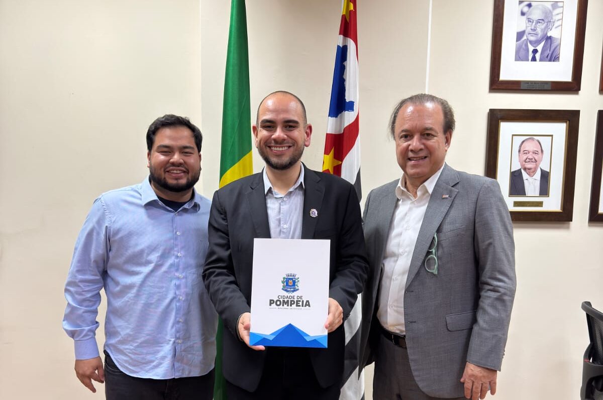 O prefeito de Pompeia, Diogo Ceschim (Podemos), esteve nesta última semana na Secretaria de Estado da Saúde, em São Paulo, para tratar de novos investimentos para o município. Ele se reuniu com o secretário estadual de Saúde, Eleuses Paiva, e com o ex-prefeito de Tupã, Caio Aoqui, que intermediou o encontro.