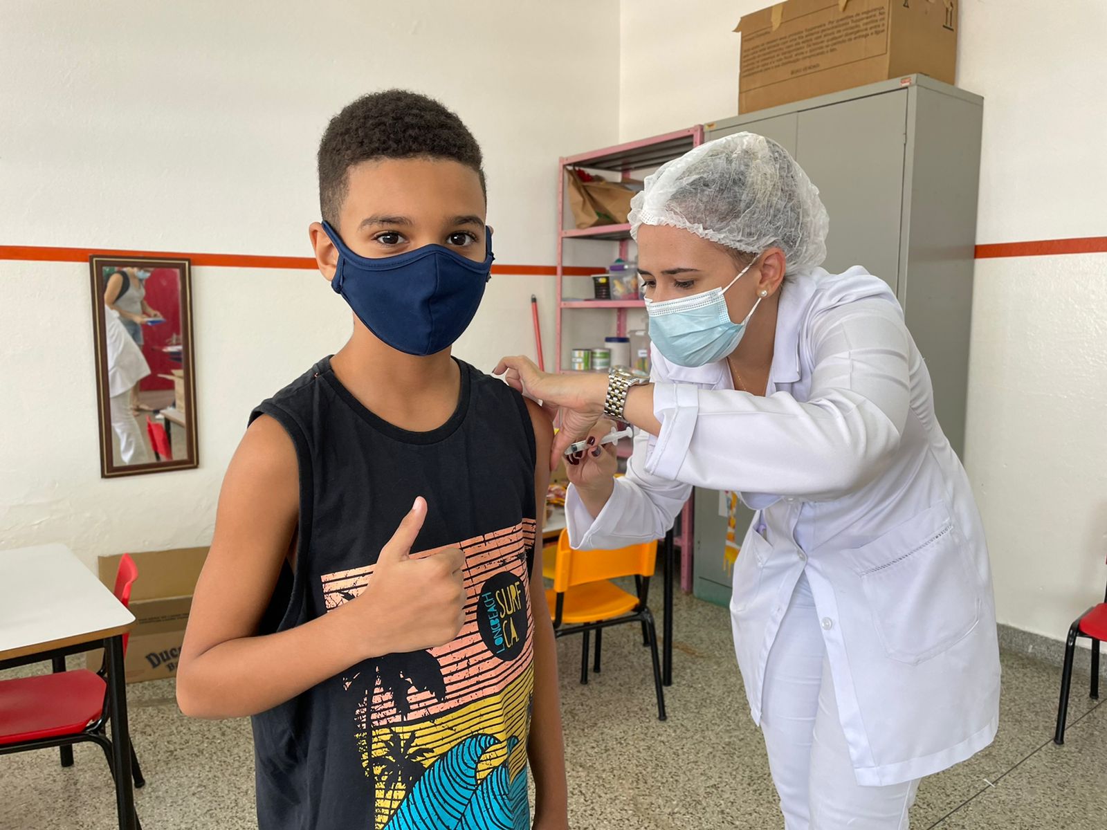 Já as crianças entre seis a 11 anos, a aplicação será da dose Coronavac, que tem prazo de 28 dias para a segunda aplicação. Ambos os casos já saem da primeira aplicação com data agendada para a segunda dose.