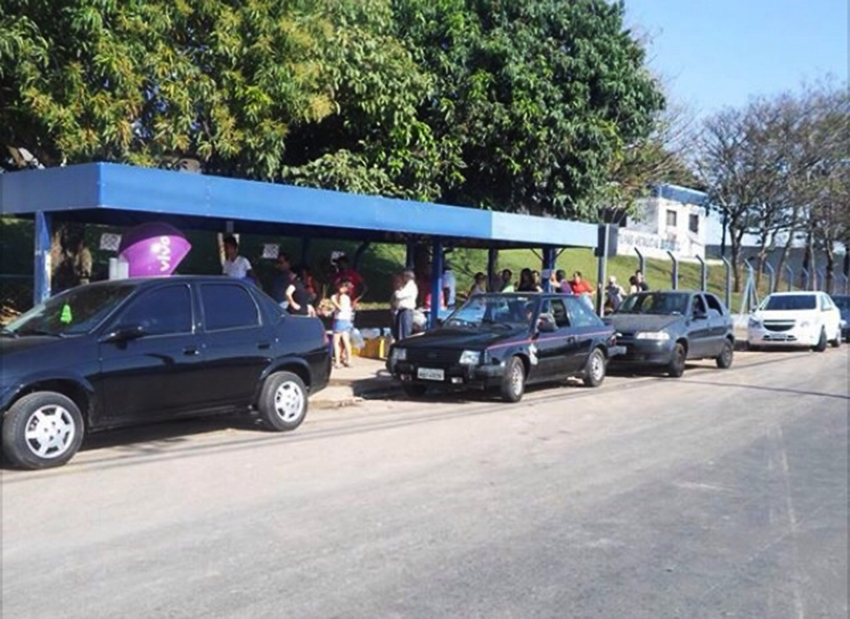 Moradores fazem fila em frente da Estrutura Metálicas Brasil: buscavam água para passar o Dia dos Pais (Foto: Julio Barros)