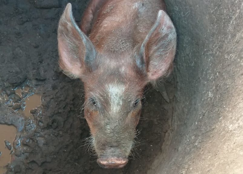 Uma testemunha contou para a veterinária que escutou o barulho do animal e seguiu o som até encontrar a porca.