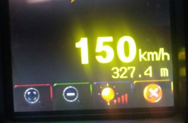 Com radares móveis, a PRE flagrou velocidades de até 150km/h em período noturno. Os veículos flagrados em excesso de velocidade serão multados.