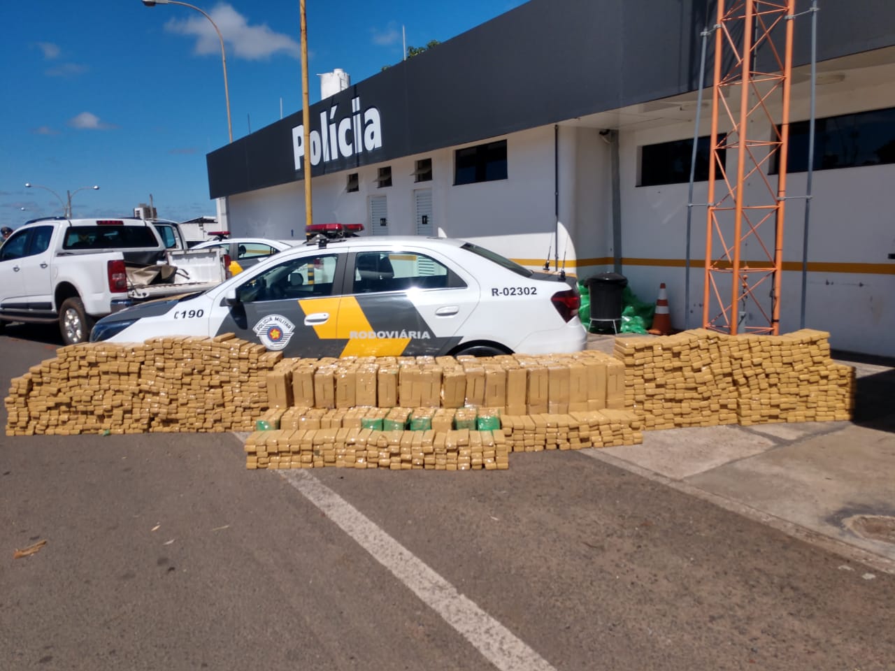 Segundo a PRE, a droga estava armazenada no banco de trás e na caçamba de uma Chevrolet S10, com placas de Maringá (PR).