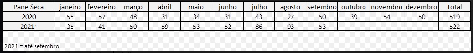 Em comparação ao acumulado dos dez primeiros meses do ano passado, houve em 2021 um aumento de 32,80% nos atendimentos – de 570 para 757 registros. Neste ano, os meses de maior incidência foram maio (88) e julho (90).