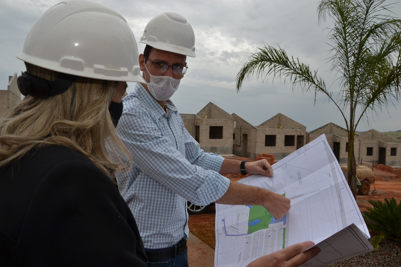 A prefeita de Pompeia, Tina Januário (PTB), visitou novamente na manhã desta terça-feira (2) as obras de 259 casas do Residencial dos Ipês em companhia de Luís Gustavo Menin, diretor da Menin Engenharia, empresa responsável pelo empreendimento.