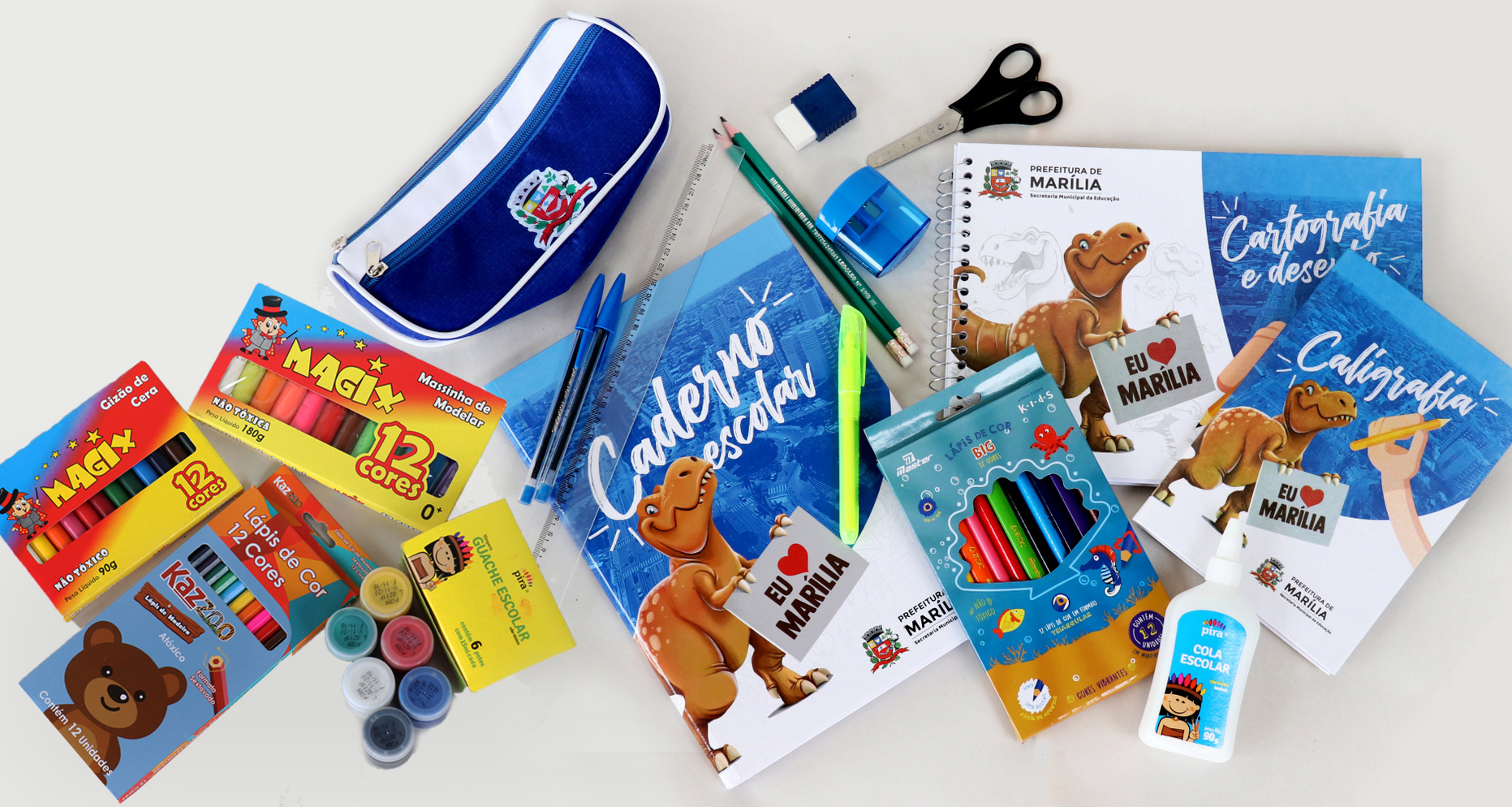 Serão beneficiados mais de 17.500 alunos da rede municipal de ensino entre Emeis e Emefs, sendo que o kit é composto por diversos itens e varia de acordo com o ano em que o aluno cursa, tendo como destaque o caderno com a capa personalizada com o dinossauro, símbolo do município de Marília.