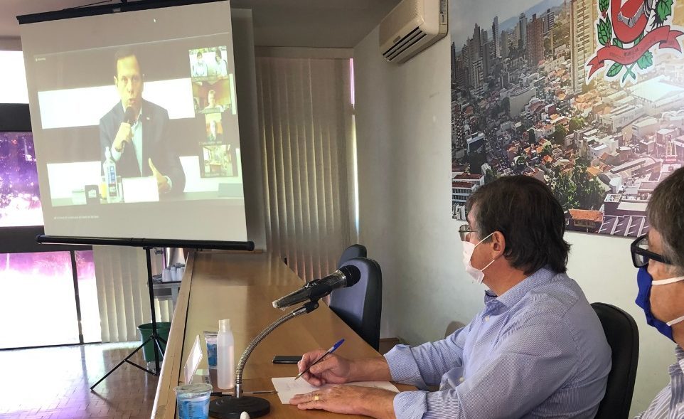 O prefeito Daniel Alonso (PSDB), juntamente com o secretário municipal da Saúde, Cássio Luiz Pinto Júnior, se reuniu em uma videoconferência com o governador do Estado de São Paulo, João Doria (PSDB), na manhã desta terça-feira (28).