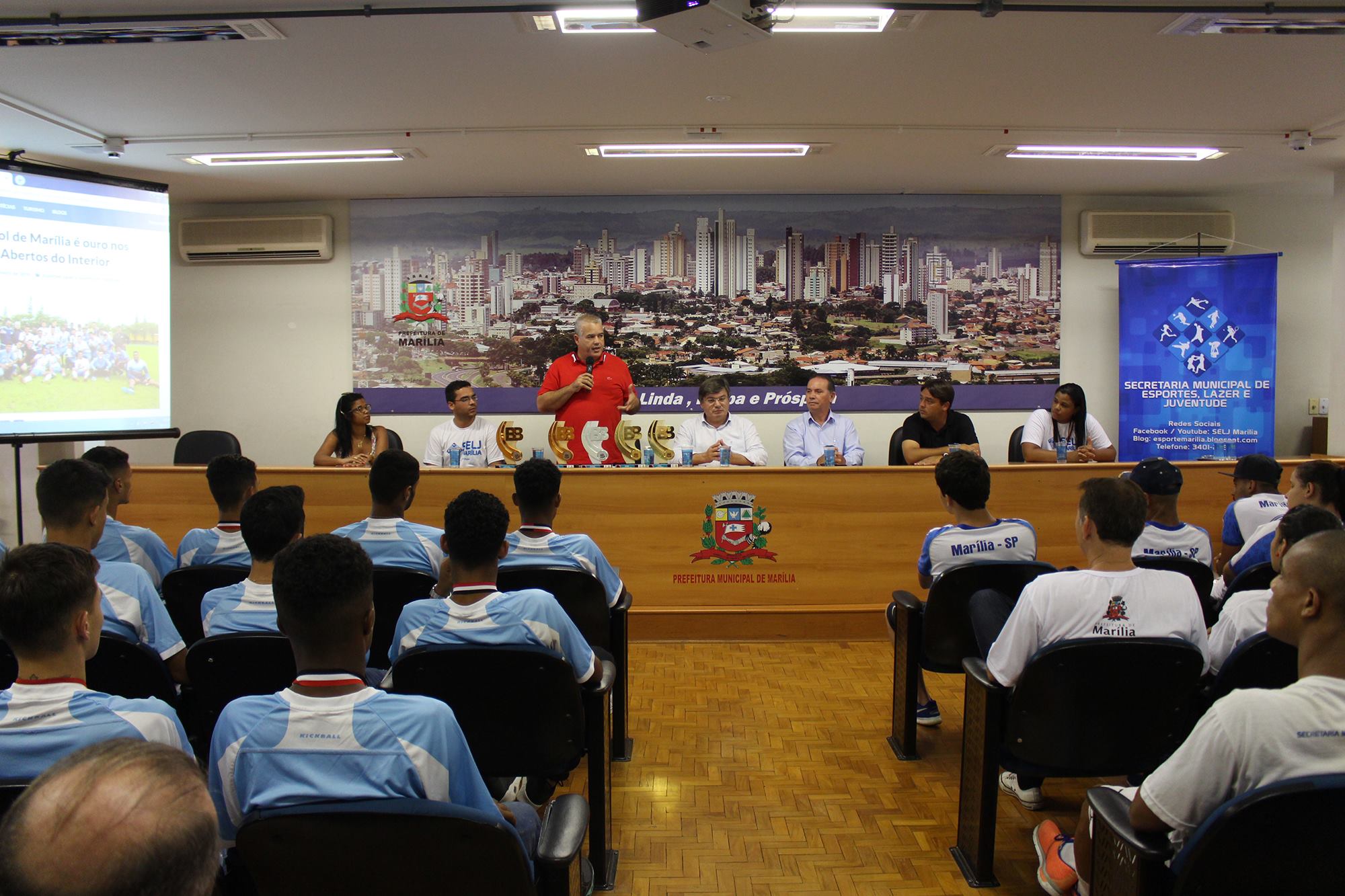 Os atletas marilienses que participaram da 82ª edição dos Jogos Abertos do Interior, realizados em São Carlos, foram recepcionados na tarde da última sexta-feira (30), no auditório da Prefeitura, pelo prefeito Daniel Alonso e pelo secretário municipal de Esportes, Lazer e Juventude, Eduardo Nascimento.