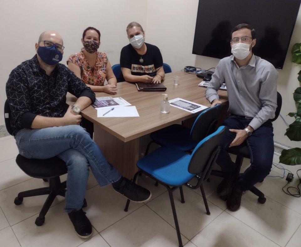 O encontro para a concretização do convênio teve as presenças da gestora da Sala ComVida, Adriana Tognoli; do diretor da Faculdade Católica, Francisco Ramirez; e dos coordenadores da Pedagogia e da Psicologia, professora Vanessa e professor Matheus.