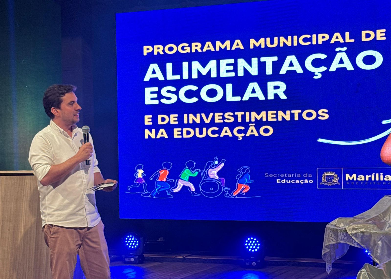 O lançamento do Programa Municipal de Alimentação e Investimentos para a Educação ocorreu na segunda-feira (3), no Teatro Municipal de Marília, com a presença de educadores, representantes do setor e autoridades.