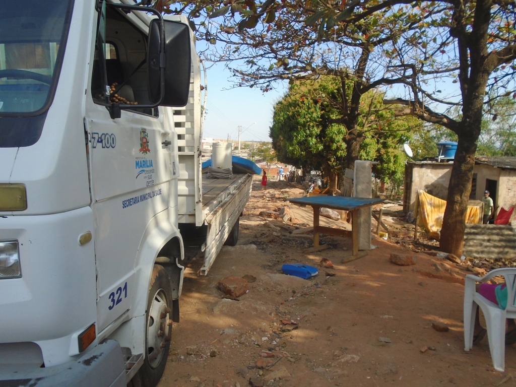 Caminhão da Prefeitura de Marília na operação de desfavelamento na zona sul