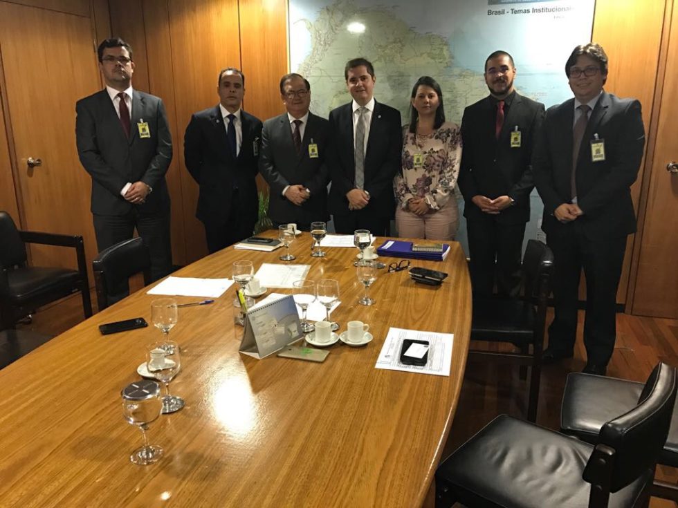 O secretário da fazenda Levi Gomes, o procurador do município Alysson Alex Souza e Silva e o presidente do IPREMM Mônica Regina Silva se reuniram com o assessor da presidência da república Bruno Bianco Leal, Narlon Nogueira representante da Previdência, Eduardo Pereira consultor do ETA e Alex Rodrigues coordenador da Secretaria da Previdência Complementar em busca de soluções para revitalização das contas do IPREMM.