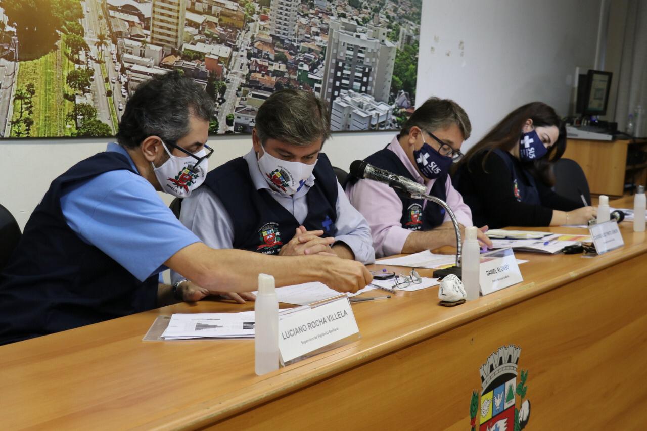 Prefeito Daniel Alonso, com equipe da Saúde, confirmou cidade na fase laranja até notificação (Foto: Divulgação/Prefeitura de Marília)