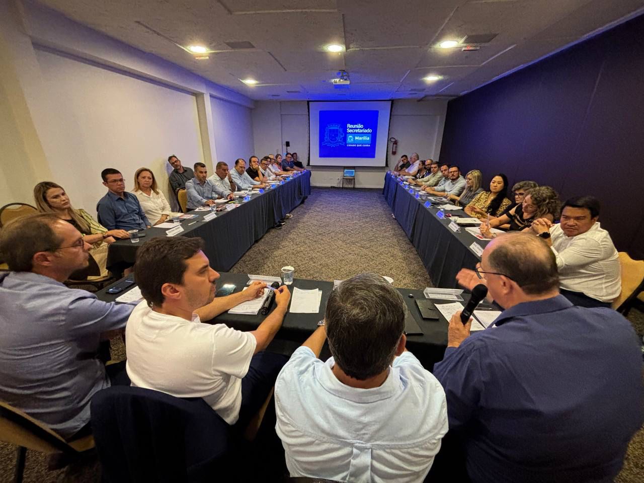 Estiveram presentes o vice-prefeito, Rogério Alexandre; os vereadores Danilo Bigeschi (presidente) e Marcos Custódio (líder do governo); Nayara Kushikawa (coordenadora do Fundo Social); e os secretários: Paloma Libanio (Saúde), José Carlos da Silva (Adjunto da Administração), Sandra Roim (Cidadania), Leonardo Mascarin (Agricultura, Pecuária e Abastecimento), Rafael Takamistu (Chefe de Gabinete), Eduardo de Mayo (Codemar), Tais Monteiro (Cultura), Cilmara Carreiro (Educação), Valéria Cavecci (Esportes, Lazer e Juventude), Rafael Rastelli (Finanças e Planejamento Econômico), Mário Rui de Moura (Meio Ambiente e Serviços Públicos), Rodrigo Más (Adjunto do Meio Ambiente e Serviços Públicos), Johnny Mota (Infraestrutura), Tadeu Consoni (Planejamento Urbano), Walter Leandro Marques (Tecnologia e Inovação), Vitor Gazola (Trabalho, Turismo e Desenvolvimento Econômico), Paulo Alves (Emdurb), Hugo Claro (Assessor Especial), Estevan Luis Marino (Procuradoria Geral do Município), Fátima Gatti (Ipremm), Ana Claudia Caetano Gimenez (Comunicação), Fernandes Baratela (Suprimentos) e Geórgia Guedes (Diretora de Controle de Convênios).