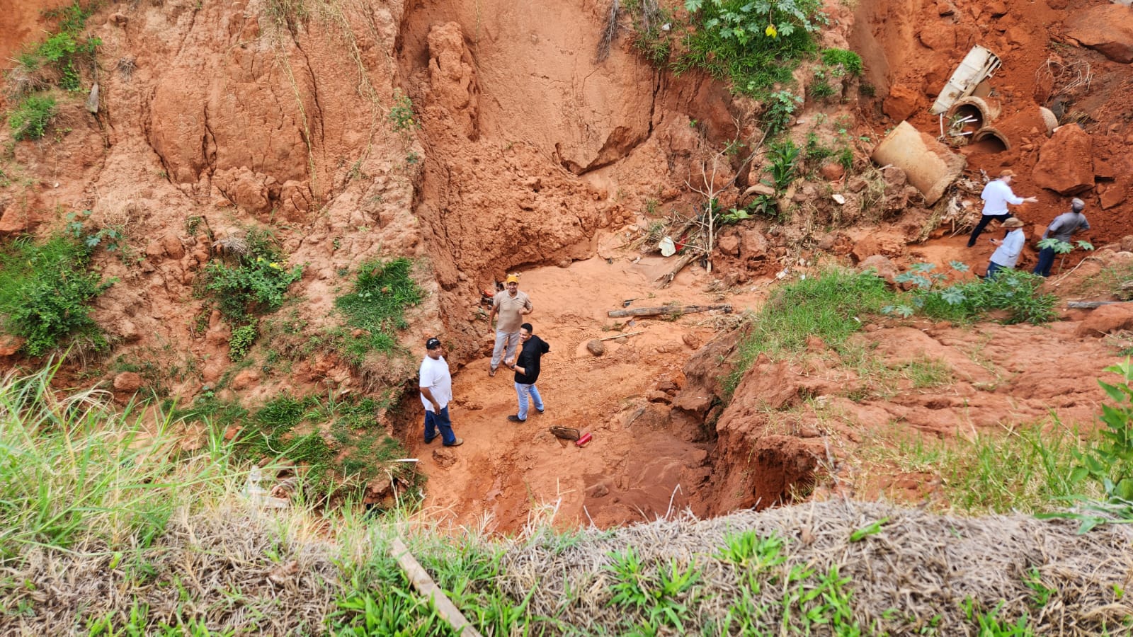 De acordo com Itapuã, a erosão foi aberta em uma área considerável de risco. “A gente está trabalhando lá. O pessoal da Defesa Civil do Estado de São Paulo está aqui hoje também, e a gente deve estar terminando as obras [de contingência para conter o risco] em torno de 15 dias”, pontua.