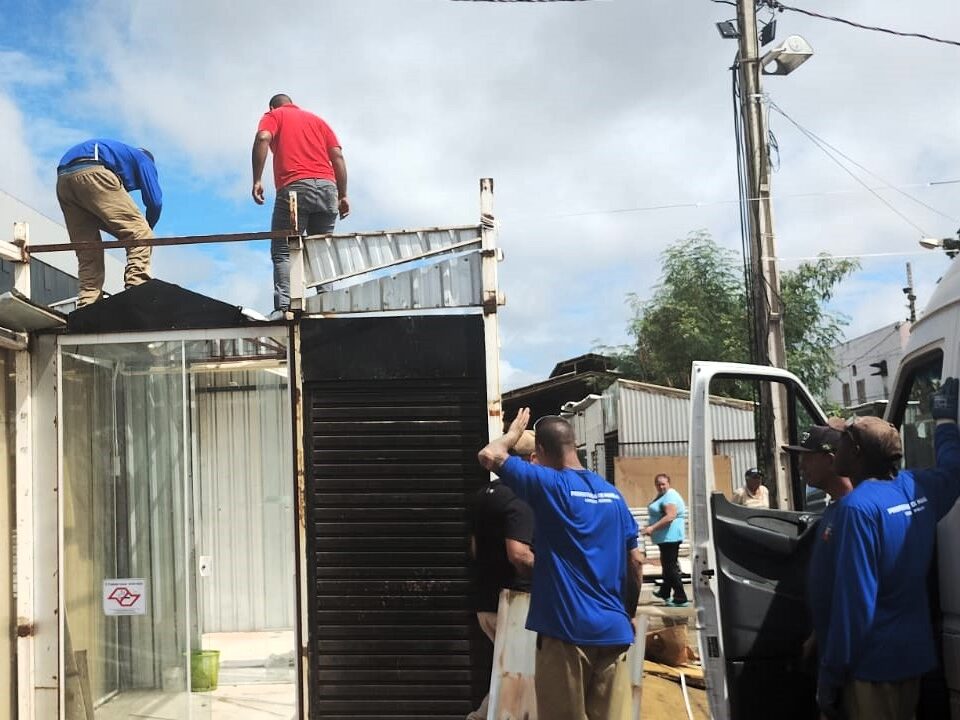 A ação contou com apoio da Polícia Militar e envolveu o desmonte de estruturas metálicas, vidros, telhados e outros materiais. Parte dos camelôs acompanhou os trabalhos no local, na região central da cidade. O serviço deve continuar nos próximos dias.