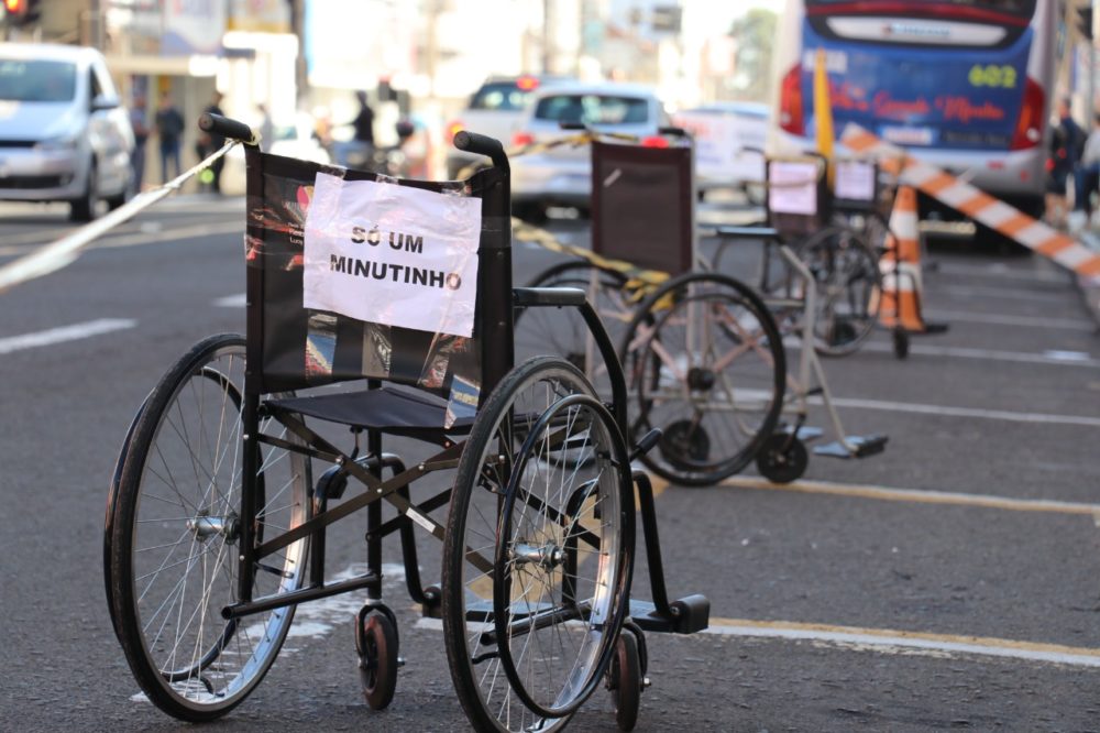 Durante a ação, cadeiras de rodas foram colocadas em vagas rotativas de veículos, com o intuito de ilustrar a imprudência dos motoristas que ocupam as vagas destinadas a pessoas com mobilidade reduzida e a idosos, com os cartazes “Volto Já” e “Só um Minutinho”.