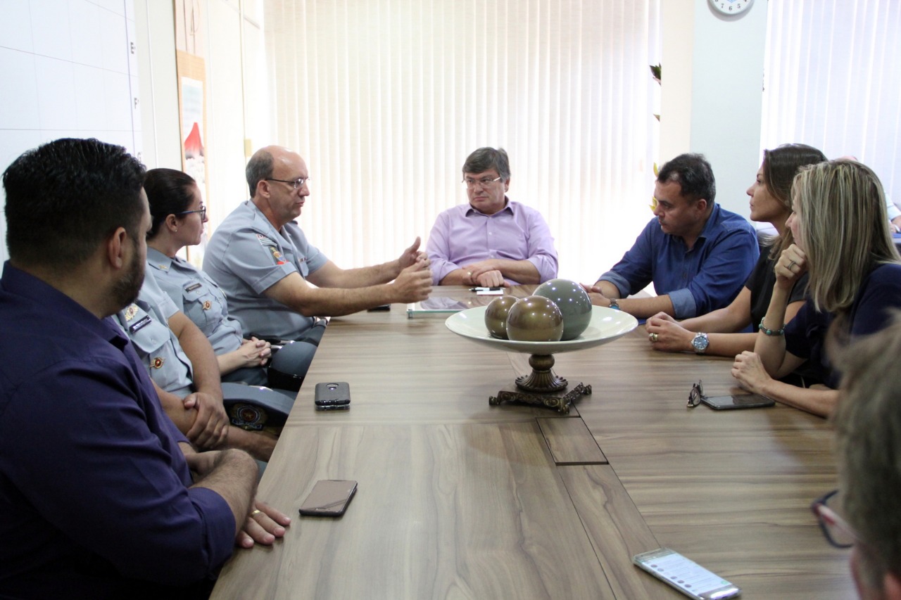 Reunião entre prefeito Daniel Alonso, integrantes da PM e outras autoridades (Foto: Divulgação)