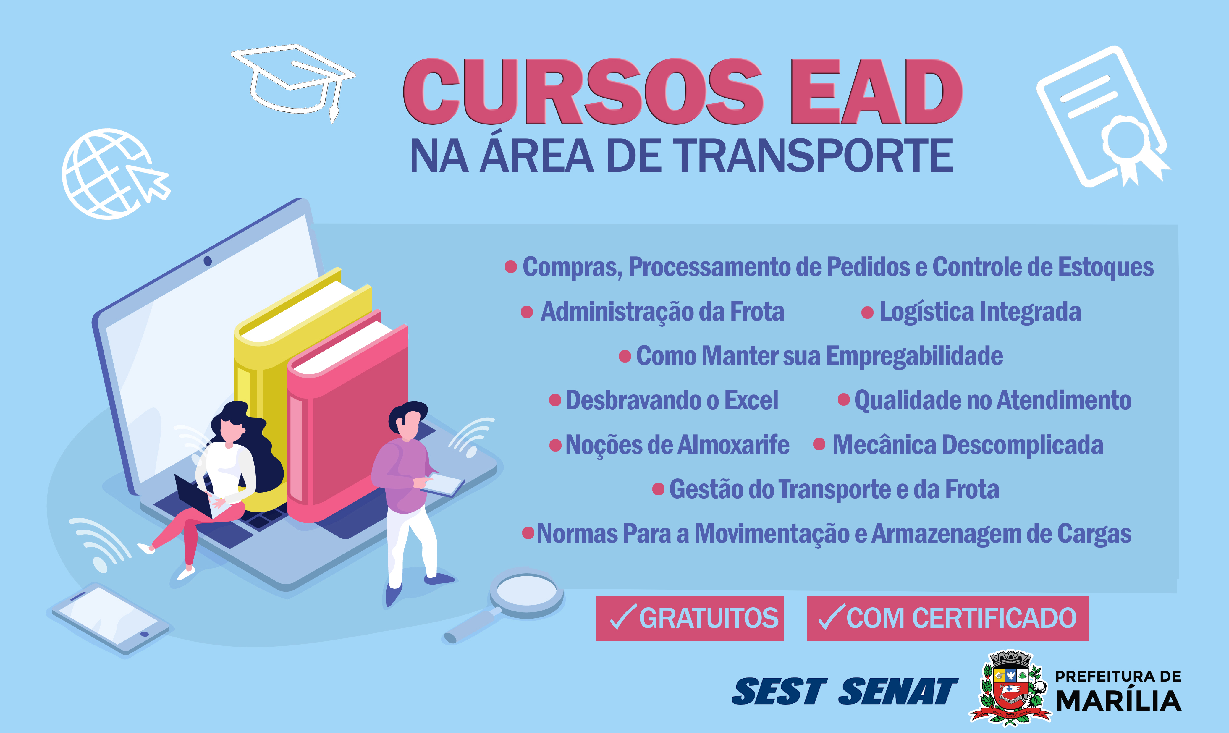 Visando à empregabilidade, o desenvolvimento econômico e à capacitação profissional nesse momento de pandemia, a Prefeitura de Marília e o Sest/Senat ofertarão a partir desta quinta-feira, dia 23 de julho, dez cursos de capacitações EAD, autoinstrucionais na área do transporte.