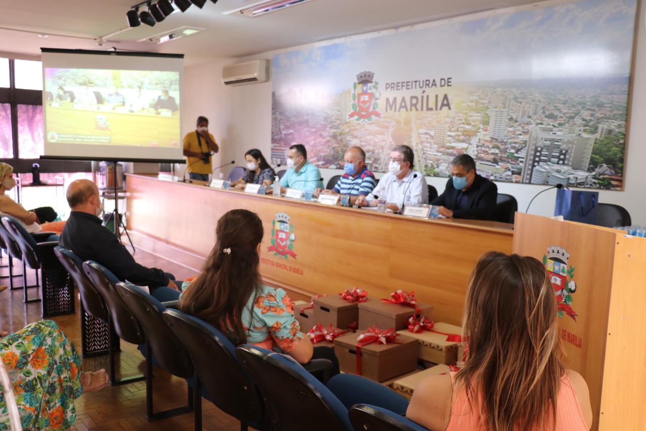 Lembranças entregues aos professores (Foto: Mauro Abreu/Prefeitura de Marília)