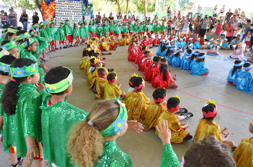 Na solenidade de inauguração, as crianças fizeram uma apresentação tendo como tema as quatro estações do ano.