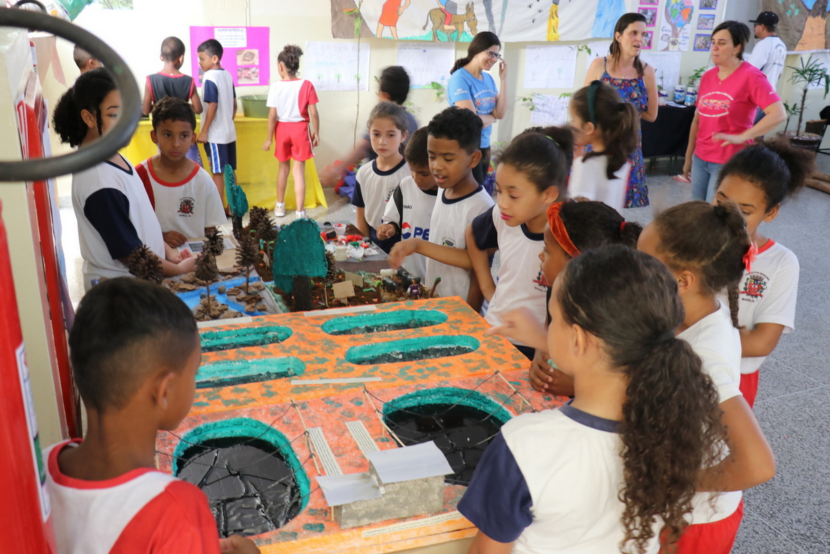 Na sexta-feira (18) à tarde, a feira aconteceu na Emef Paulo Freire, na zona sul, onde os alunos confeccionaram maquetes, terrários e cartazes, além do plantio de mudas no Parque do Povo e arrecadação de garrafas PET e de lacres.