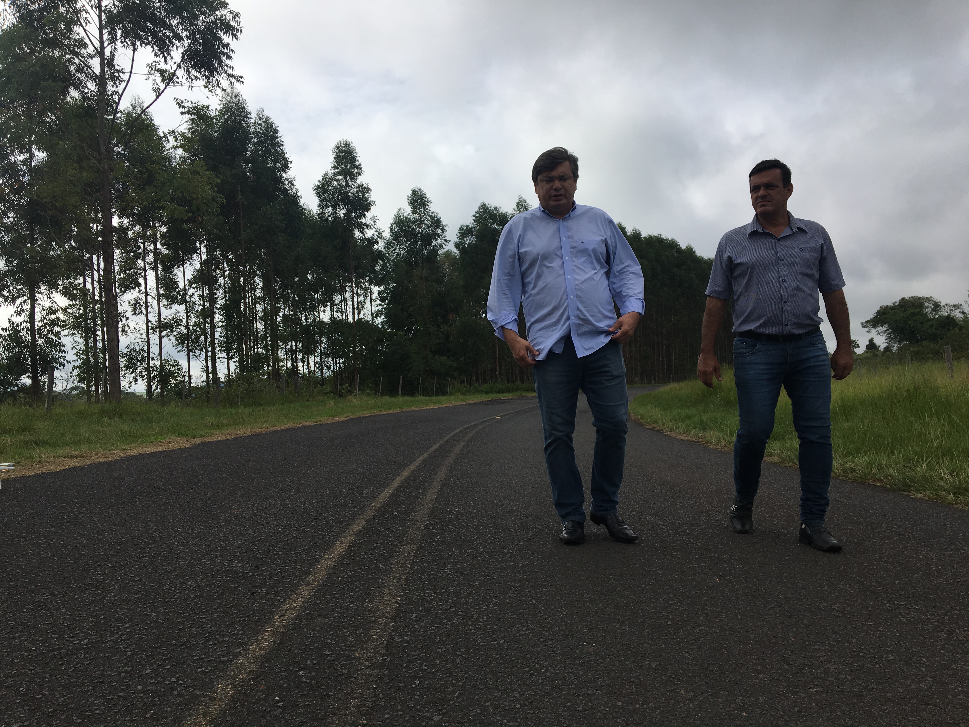 Prefeito Daniel Alonso e vereador Evandro Galete vistoriam estrada vicinal de Avencas, que recebeu operação tapa-buracos recentemente. (Foto: Mauro Abreu)