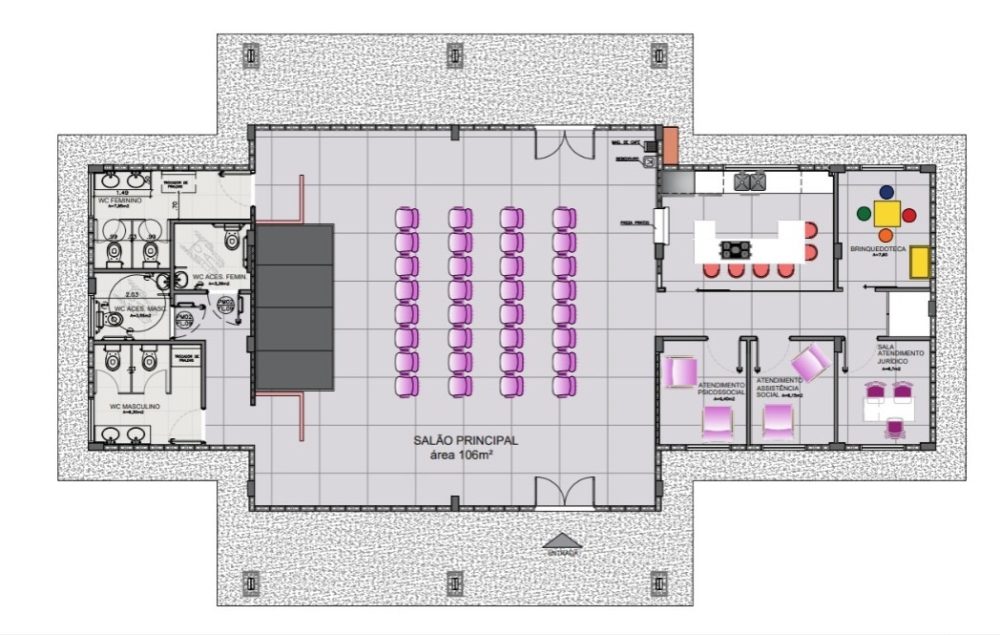 O prédio da nova Casa da Mulher ficará entre as ruas Osório Alves, Frei Jacinto e Júlia Nomura, anexo ao bairro Fragata, zona Sul da cidade. Trata-se de uma área de 257,42m², com salão principal, dois anexos contendo banheiros masculino e feminino acessíveis, cozinha, brinquedoteca e salas de atendimento social, psicológico e jurídico.