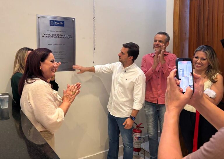 A Prefeitura de Marília inaugurou oficialmente na manhã desta quinta-feira (23) o Centro de Formação dos Profissionais da Educação, que fica na rua Santa Carolina, 158-B, no bairro Higienópolis, zona oeste da cidade. A cerimônia contou com a presença do prefeito Vinicius Camarinha (PSDB), autoridades municipais, representantes de universidades e profissionais da rede municipal de ensino.