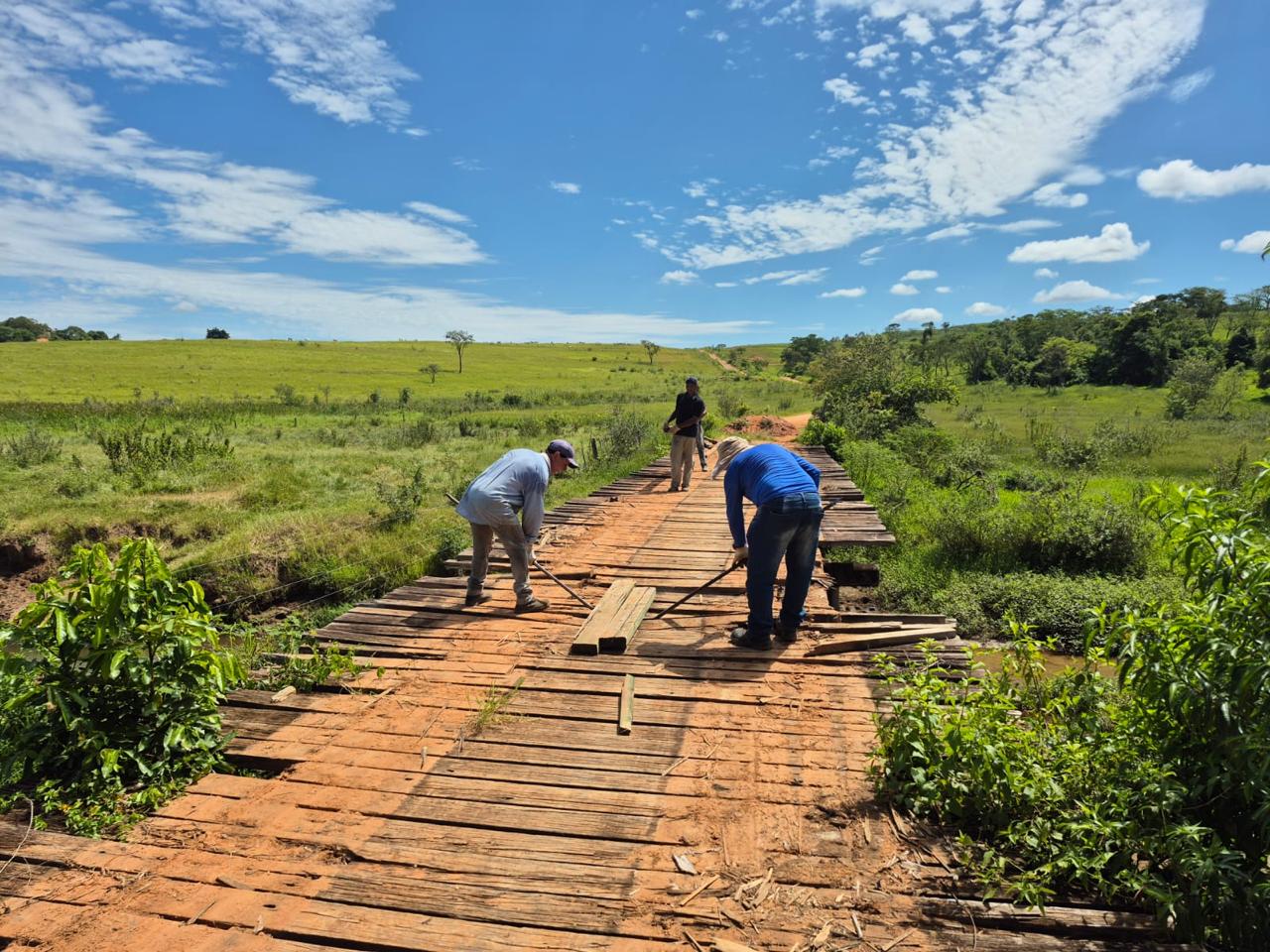 Segundo a Prefeitura, o serviço inclui manutenção nas longarinas e reparos nas vigotas do tablado da estrutura, com o objetivo de garantir mais segurança para moradores da região e para o tráfego local, além de contribuir para o escoamento da produção rural.