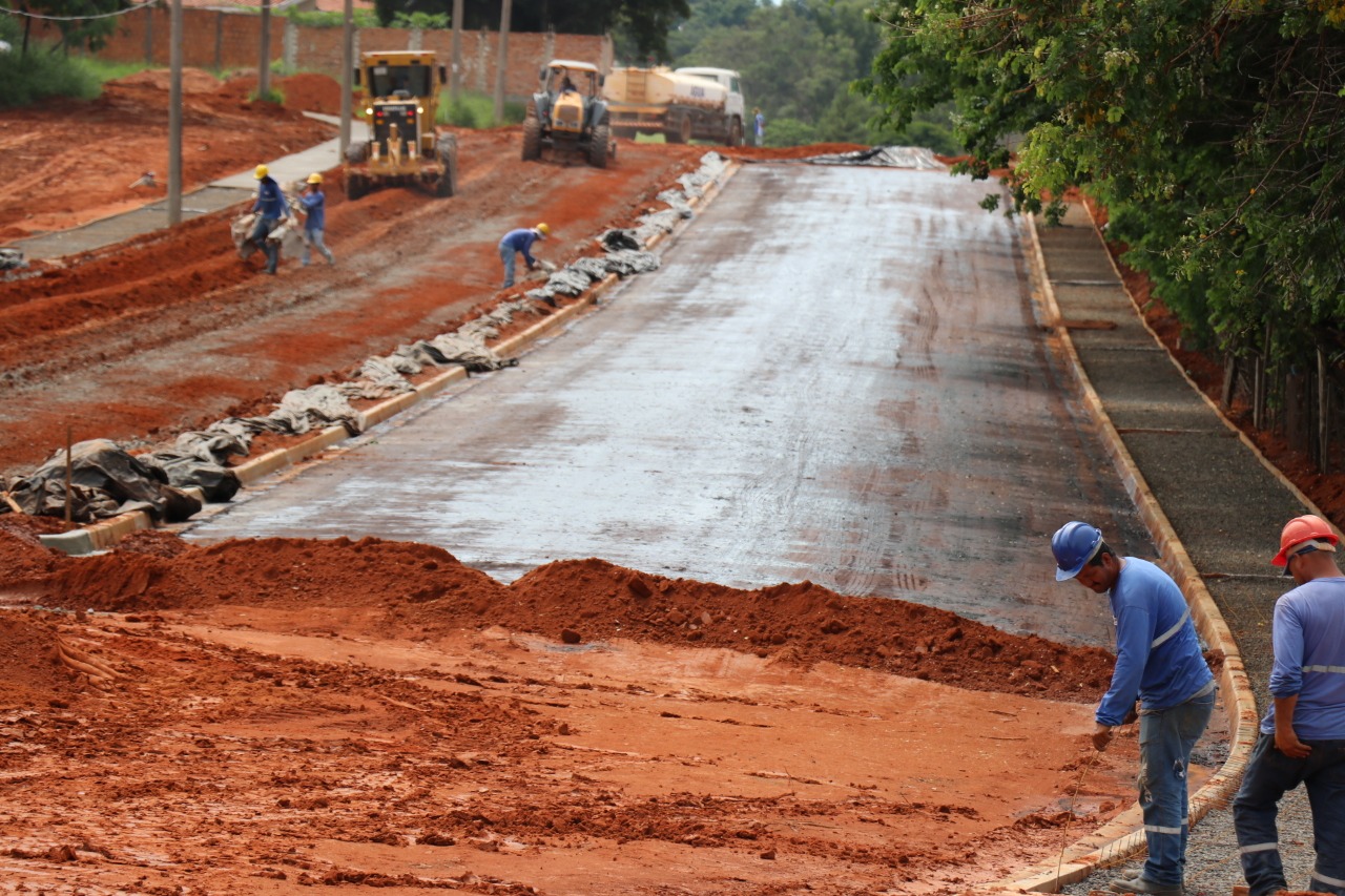 Além do início da pavimentação nesse trecho, outras frentes estão trabalhando nessa importante avenida, que tem 950 metros de extensão em cada via e somente de pavimentação asfáltica serão 26.255 m², sendo uma importante interligação de vários bairros da zona oeste.