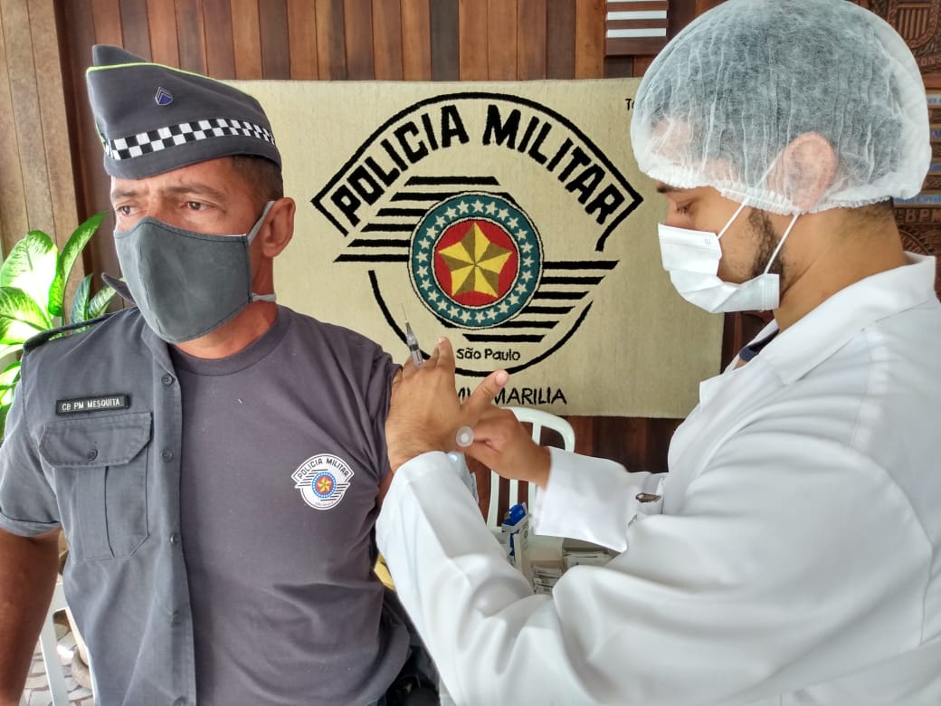 A Prefeitura de Marília deu início na manhã desta segunda-feira (5), no 9º Batalhão de Polícia Militar do Interior, à vacinação contra a Covid-19 dos profissionais da segurança pública. Imunização vai atingir os trabalhadores da Polícia Militar, Polícia Civil, Corpo de Bombeiros, Polícia Técnico-Científica, Polícia Rodoviária Estadual, Polícia Rodoviária Federal, Polícia Ambiental e Polícia Federal.
