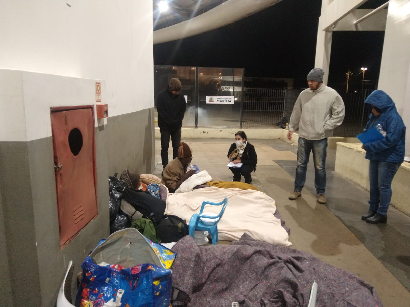 Nas noites de frio intenso, as equipes de Abordagem e Defesa Civil percorrem as ruas nas madrugadas, entregando chá e chocolate quente, além de cobertores e roupas para aqueles que recusam o acolhimento na Casa Cidadã, no Programa Acolhe Marília.