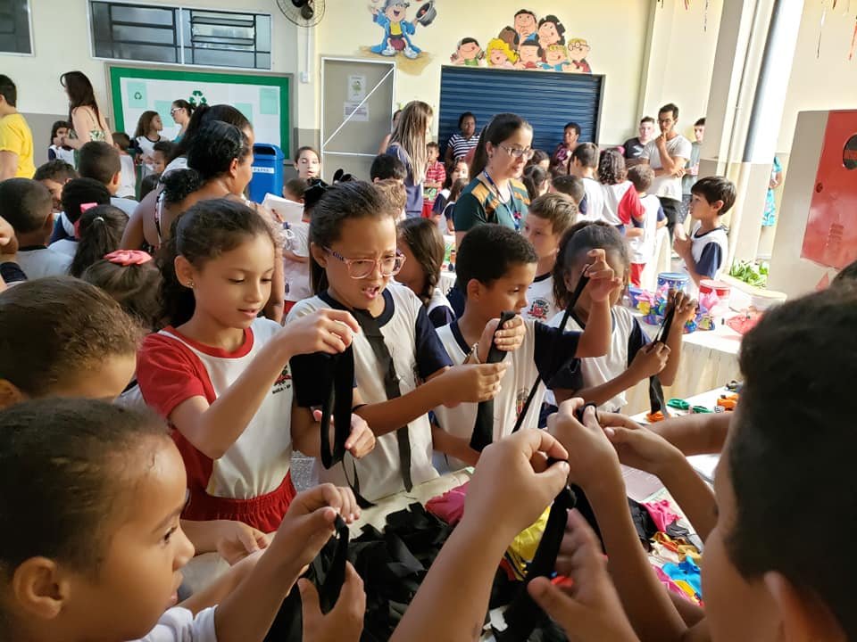 Neste sábado, dia 5, as partir das 13h30 foram apresentados esses trabalhos na I Feira Socioambiental da Emef Olimpio Cruz . Os visitantes receberam brindes e concorreram a uma muda frutífera no final do evento.