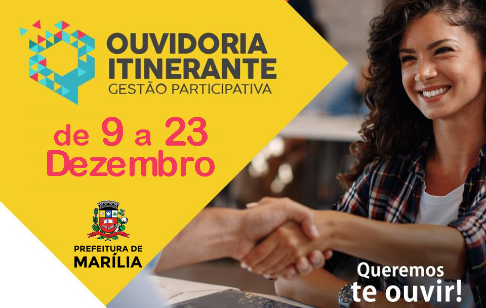 A Prefeitura de Marília, por meio da Ouvidoria Geral do Município, estará levando o projeto Ouvidoria Itinerante para todas as regiões da cidade entre os dias 9 e 23 de setembro, das 8h às 13h30.