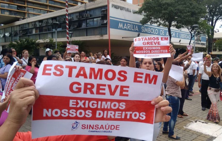 Cerca de 450 funcionários do ESF entraram de greve na terça-feira (20) e mais de 30 postos de saúde passaram somente a atender urgência e emergência, conforme o SinSaúde – sindicato da categoria, informou. Protestos foram registrados nos últimos dois dias em frente ao Paço Municipal.