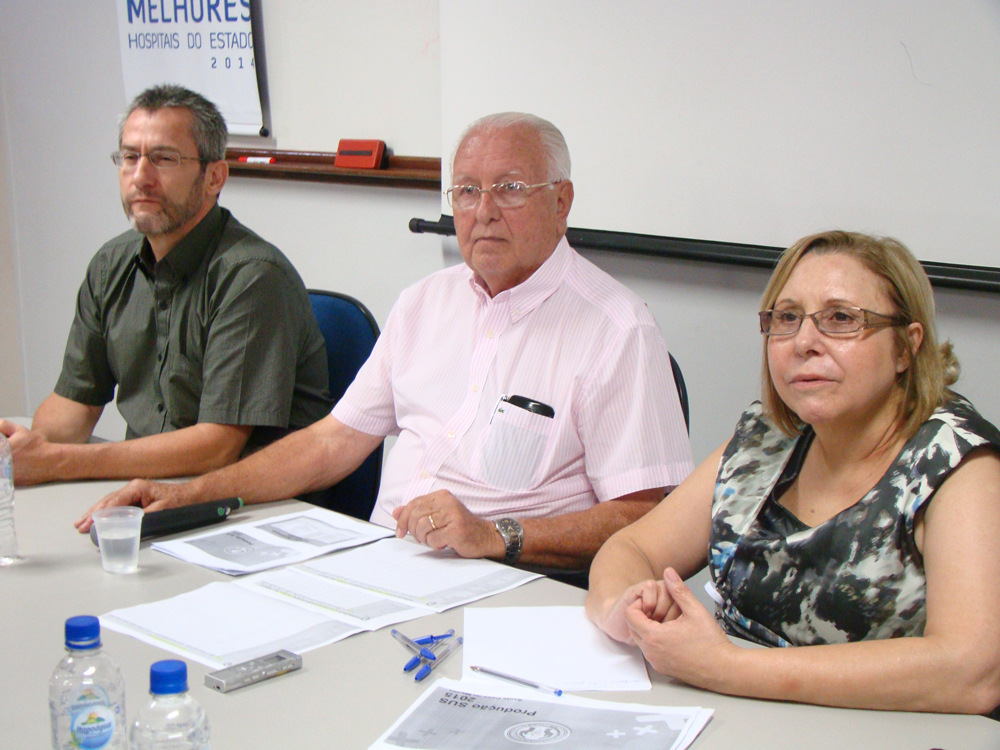 Da esquerda para a direita: Diretor financeiro, Sérgio Stopato Arruda; Milton Tédde, provedor da Santa Casa e Kátia Santana, superintendente do hospital