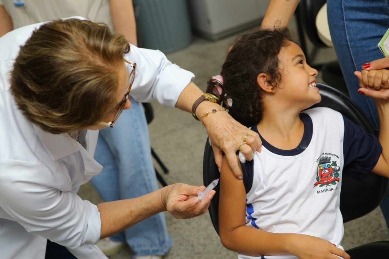 A Prefeitura de Marília iniciou nesta sexta-feira (25) a Campanha de Vacinação nas Escolas, com uma cerimônia realizada na Emef Edméa Braz Rojo Sola, na zona oeste da cidade. A ação faz parte do Programa Saúde na Escola (PSE) e é promovida em parceria pelas secretarias municipais da Saúde e Educação.