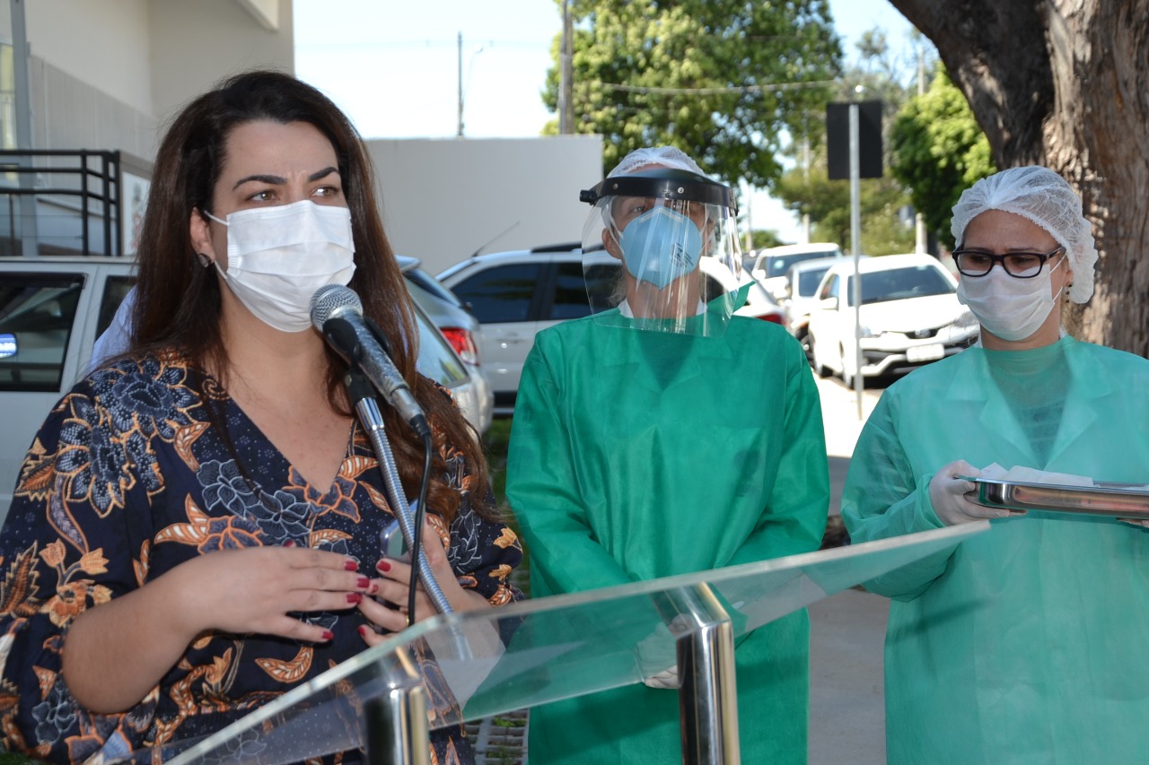 Alessandra Arrigoni, chefe da Vigilância Epidemiológica, e servidoras da saúde; profissionais da área estão sendo testados (Foto: Leonardo Moreno/Marília Notícia)