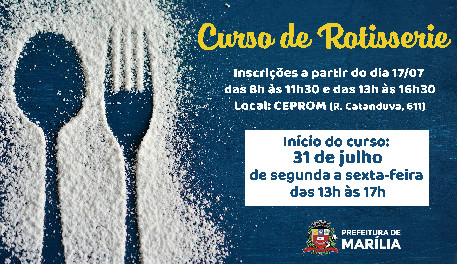 A Prefeitura de Marília, por meio da Secretaria Municipal de Assistência e Desenvolvimento Social, e em parceria com a Associação Paulista de Supermercados (Apas Regional Marília), vai disponibilizar 20 vagas para o curso de Rotisserie.