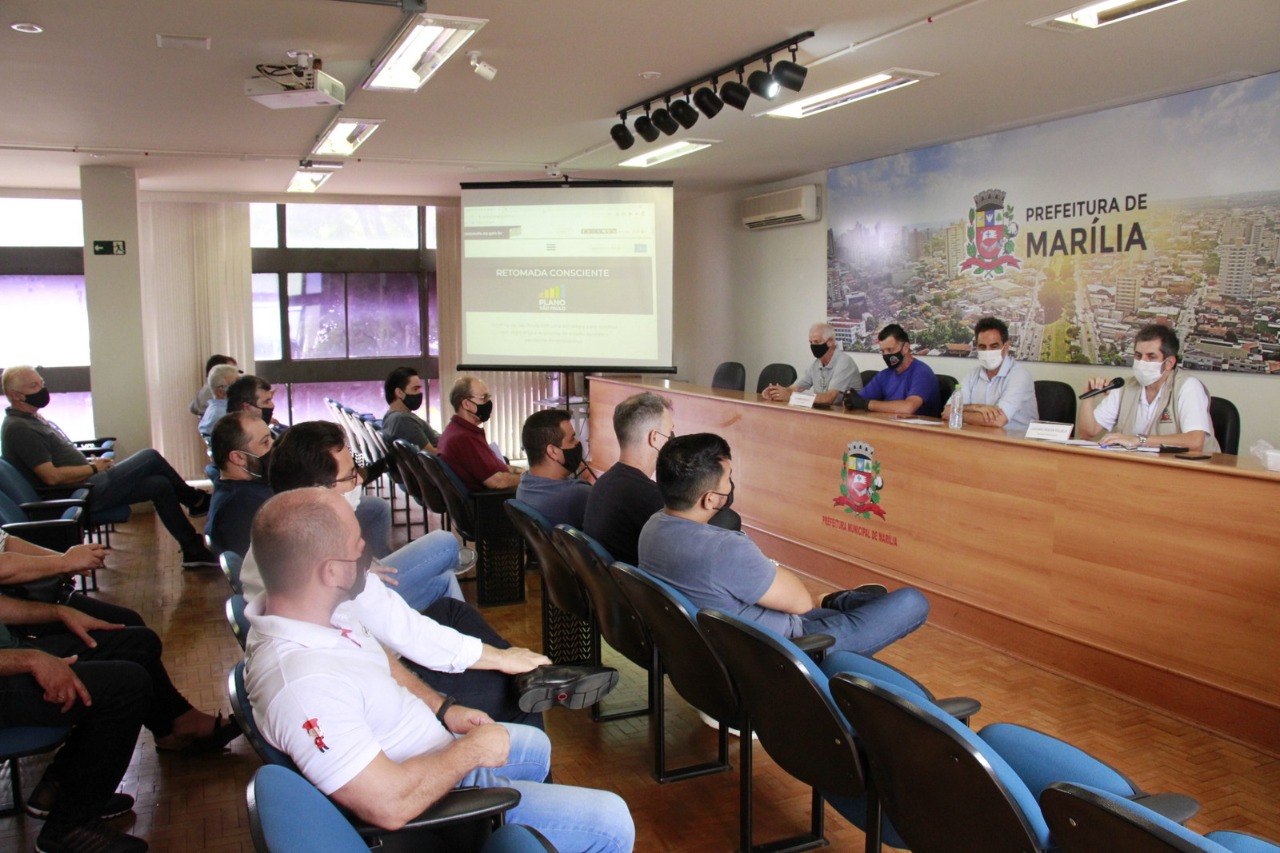 A reunião foi convocada pelos setores de Vigilância Sanitária e Fiscalização de Posturas, em virtude da preocupação com o aumento de casos confirmados da Covid-19 em Marília e denúncias de aglomerações em alguns estabelecimentos.