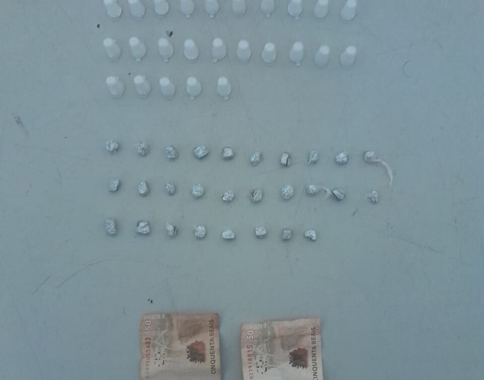 A denúncia aponta que ele estava atravessando um campo de futebol. Ao perceber a presença da viatura, tentou fugir a pé e se escondeu nos fundos de uma casa. Durante a abordagem, os policiais encontraram com o acusado 28 pedras de crack, 25 pinos com cocaína e R$ 100.