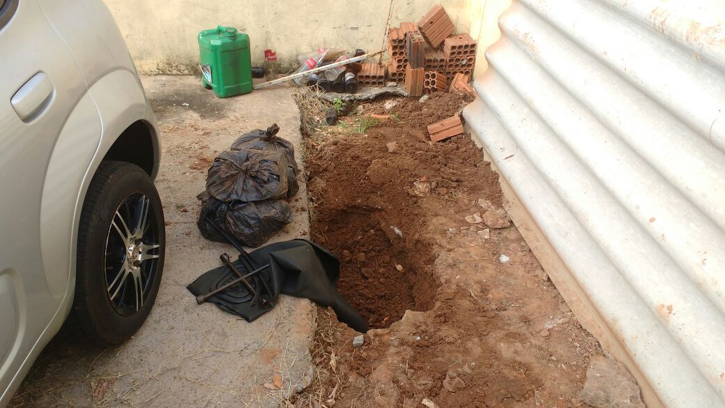 Os policiais viram através de um portão aberto que moradores da residência estavam desenterrando drogas.