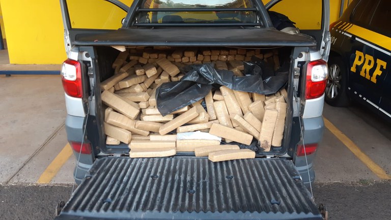 Por volta das 16h, os policiais abordaram uma pick-up Fiat/Strada, no quilômetro 347, da rodovia. Ao vistoriarem o compartimento de cargas, os policiais encontraram 727 tijolos de maconha, totalizando 290 quilos da droga.