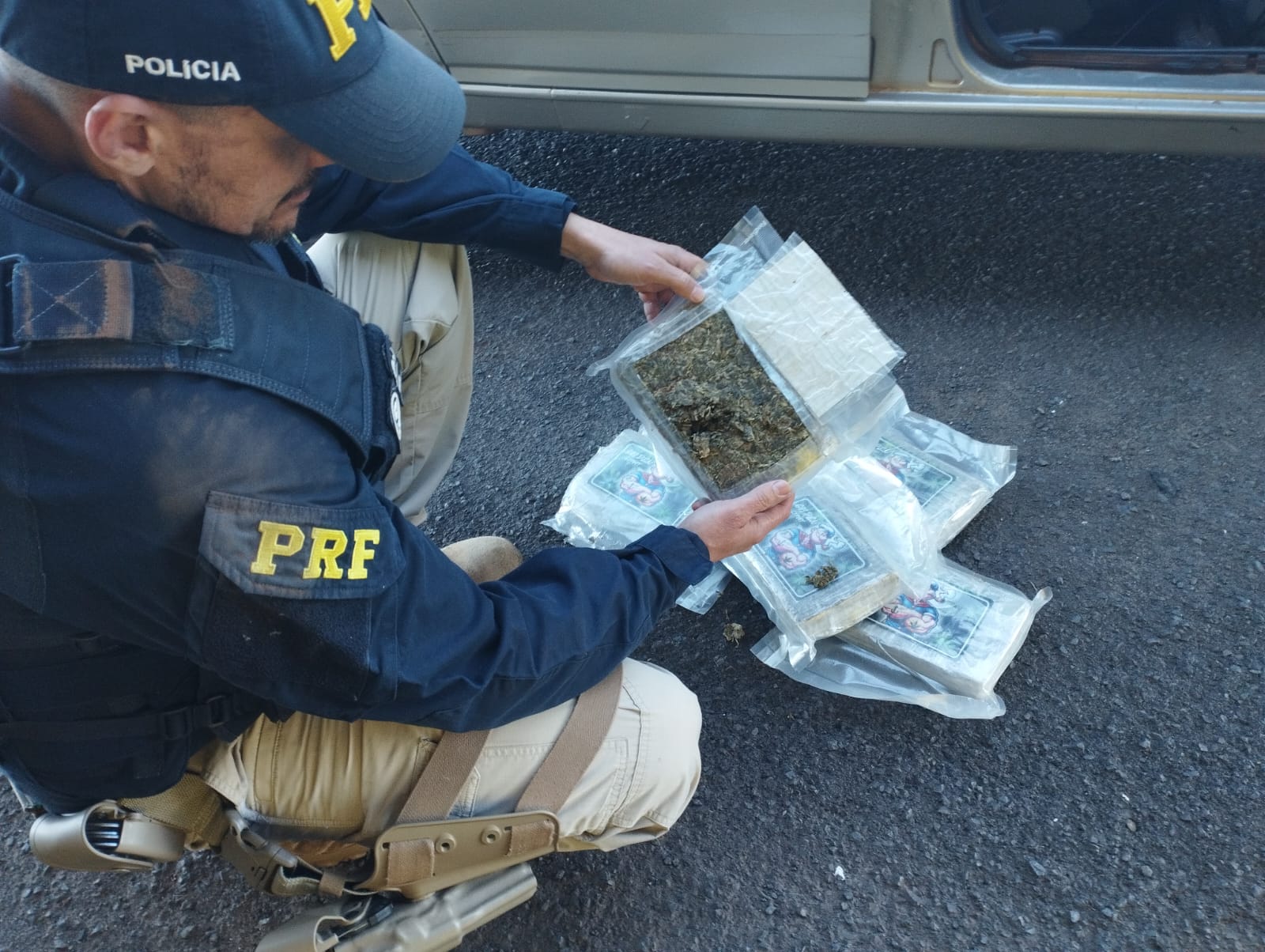A Polícia Rodoviária Federal (PRF) apreendeu oito quilos de maconha na tarde desta quarta-feira (25), durante uma abordagem na rodovia Transbrasiliana (BR-153), em Ourinhos. A droga estava escondida em um compartimento atrás do painel de um Fiat Uno cinza.