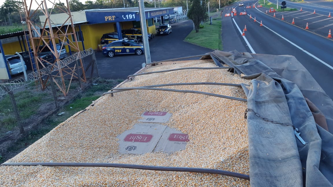 Segundo o condutor, estaria sendo transportada uma carga de milho, que teria carregado em Maringá e que levaria até Santos.