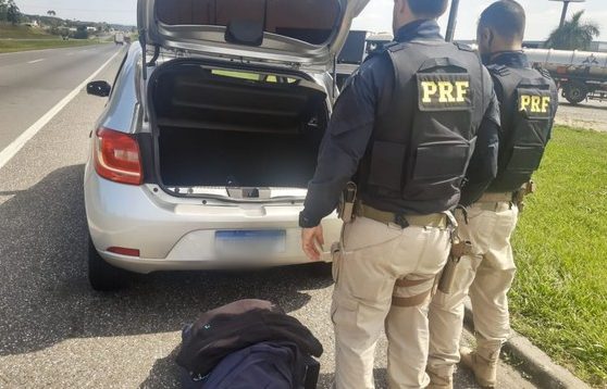 O condutor, Robson Muller juntamente com o passageiro Julio Cesar Borges, demonstraram nervosismo e informações desconexas, por isso a PRF iniciou as buscas no veículo e nos indivíduos.