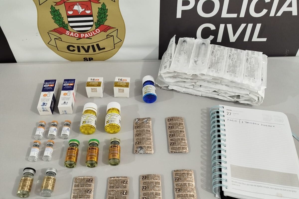 No local, os agentes encontraram nove frascos de medicamentos que afetam apetite, digestão e liberação de insulina, além de diversos anabolizantes como testosterona, oxandrolona, nandrolona e metandrostenolona, em forma de comprimidos e injetáveis. Parte dos produtos estava armazenada na geladeira e outra parte em uma caixa na sala do apartamento.