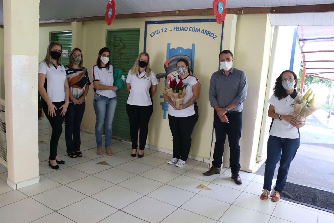 A supervisora de Educação Básica, professora Karina Carrião, e o secretário municipal da Educação, Helter Bochi, estiveram na escola para parabenizar as docentes, equipe de direção, coordenação e servidores de apoio.