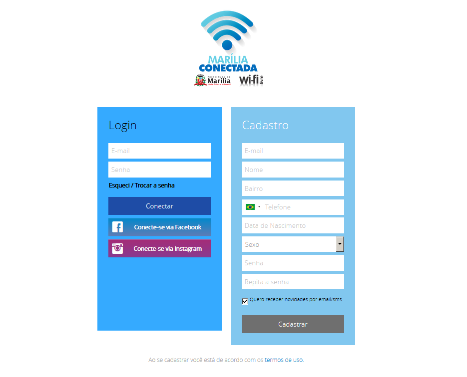 Os dados trafegados são invioláveis. Os únicos dados analisados serão os que dizem respeito ao controle da qualidade da rede Marília Conectada, como por exemplo: velocidade de conexão, quantidade de usuários simultâneos, consumo de banda e gerenciamento dos pontos de acesso.